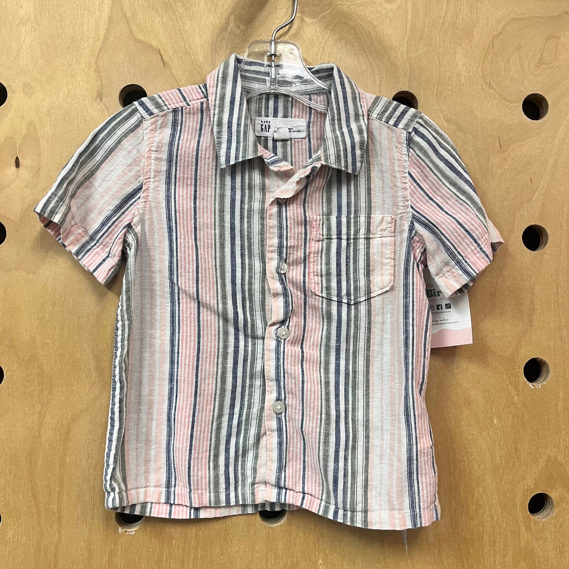 Striped Linen Blend Button Up Shirt